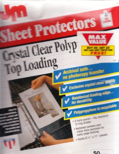 75 Clear Polypropylene Sheet Protectors Holds 8.5" X 11" Sheets. Archival Safe. Crystal Clear Quality. Reinforced Binding Edge. 3-Hole Punch. Top Loading.